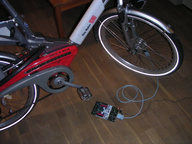 Um ein CallABike in ein HackABike zu verwandeln, mussten wir sechs Schrauben auf der Innenseite des Schlosskastens mit dem Display öffnen und das Kabel des STK500 an den ISP-Anschluss der Platine stecken. Danach haben wir ein Script gestartet, dass das Flash und den EEPROM Bereich ausliest. Das EEPROM wird danach mit zurückgesetztem Counter und dem Flash mit unserer Backdoor wieder zurückgeschrieben. Damit niemand unsere Backdoor auslesen kann, haben wir natürlich noch die Lockbits gesetzt. Ein geschulter Hacker brauchte ca. 12 Minuten, um zwei CallABikes parallel in HackABikes zu verwandeln. Insgesamt wurden knappe 10% der in Berlin verteilten CallABikes in ein HackABike umgebaut indem ihnen eine neue firmware verpasst wurde. Da UISP das Setzen der Lockbits nicht korrekt unterstützte, mussten wir das erstmal einbauen. Dazu haben wir den Output von AVR-Studio mit einem serial sniffer mitgelesen und uns die entsprechenden Kommandos für das STK500 rausgesucht und in UISP eingebaut.